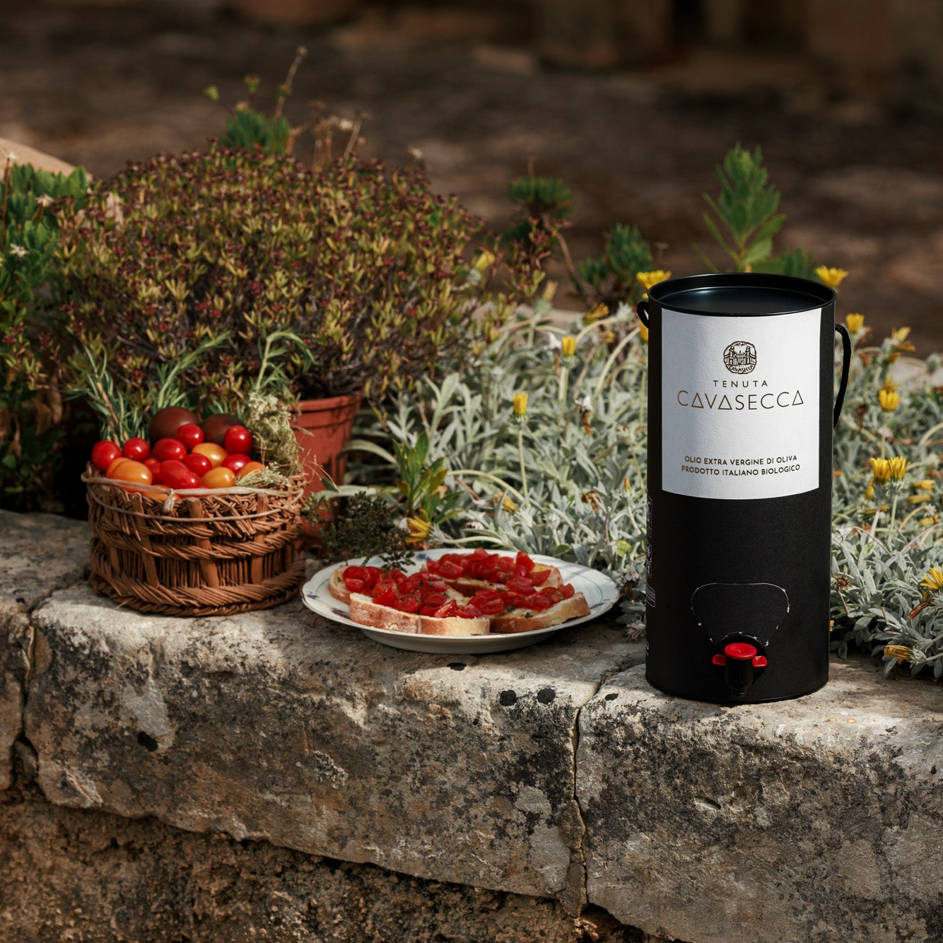 Un elegante tubo in cartone contenente una sacca a doppio strato. L’olio EVO viene erogato attraverso un rubinetto ad alta prestazione. Questo particolare packaging è ideato per proteggere il prodotto dalla permeabilità all'ossigeno, garantendone una durata maggiore.